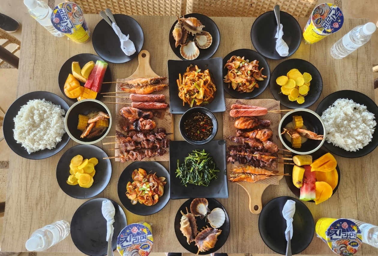 삼겹살과 새우, 오징어, 다양한 야채까지